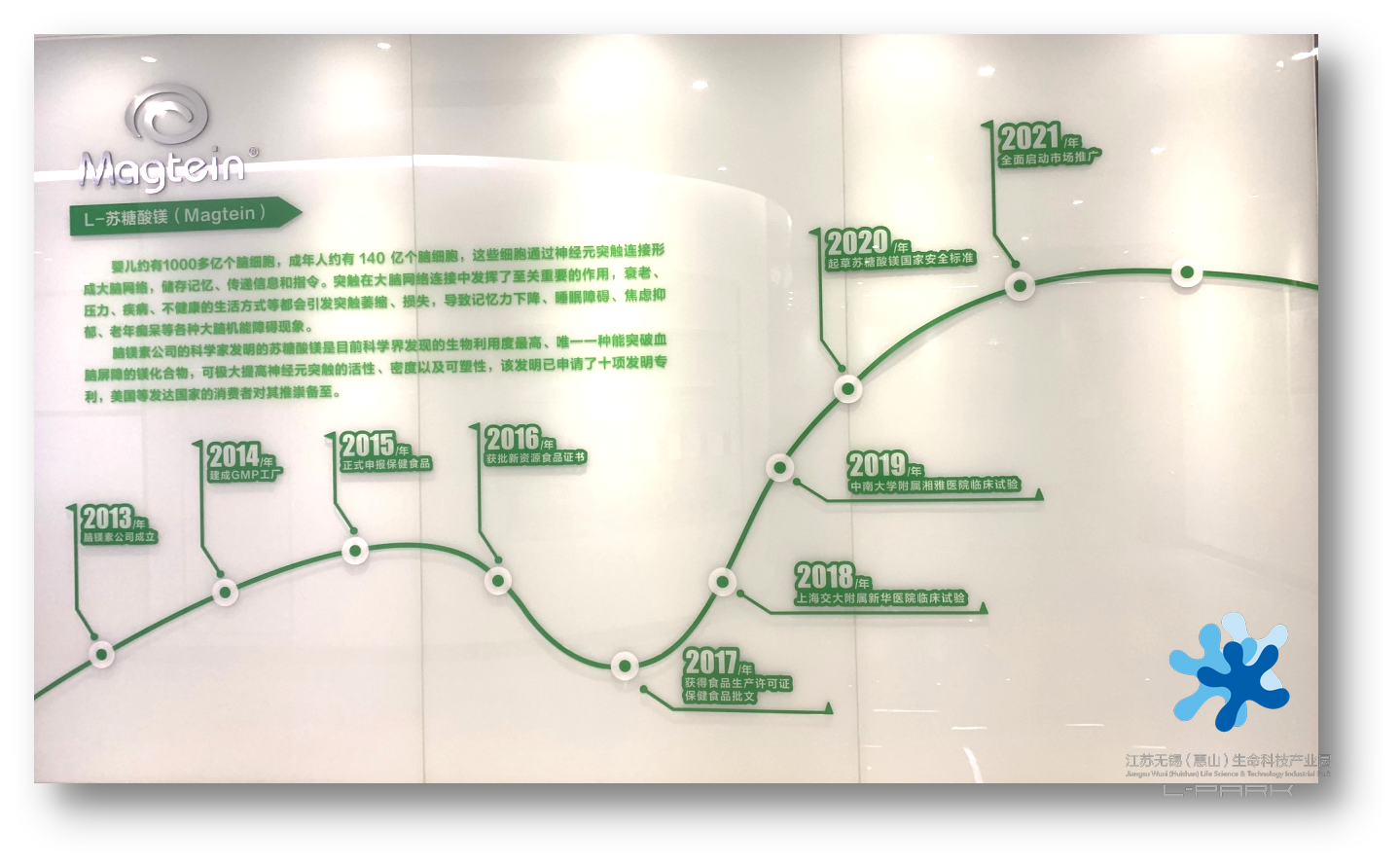 腦鎂素科技成立于2013年,專業研發生產腦健康產品,研發團隊由L-蘇糖酸鎂全球專利持有者——美國Magceutics公司首席科學家劉國松教授領銜,擁有5000m2生產基地及醫院級凈化生產車間。L-蘇糖酸鎂2010年在美國被發明,通過FDA的GRAS(安全性)認證后迅速成為美國主流腦健康產品;2016年通過中國衛生部安全性審查,作為營養強化劑新品種獲得保健食品證書。臨床試驗證明,產品具有改善大腦功能,幫助改善睡眠、增強記憶力、緩解焦慮抑郁,同時有效預防老年癡呆。目前在美國,治療阿爾茨海默癥的三期臨床試驗正在進行,適應多動癥的臨床試驗也已在準備中,未來或將成適應多個年齡段的保健食品、功能性食品的重要原料。