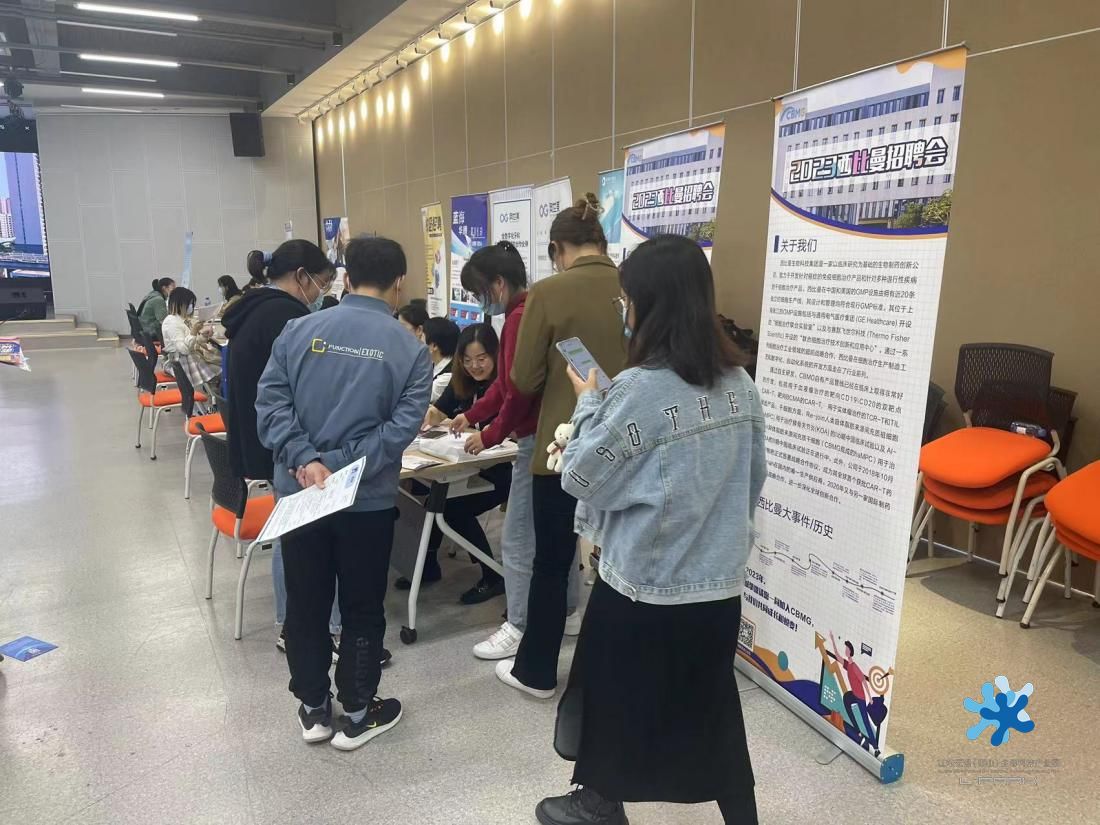 10月25日下午,2022年校園招聘惠山專場在江南大學蠡湖校區北區大學生活動中心舉行,惠山生命園生基醫藥、西比曼生物、吐露港、孚維爾生物等14家園區企業在園區黨總支委員會的組織下參加招聘。