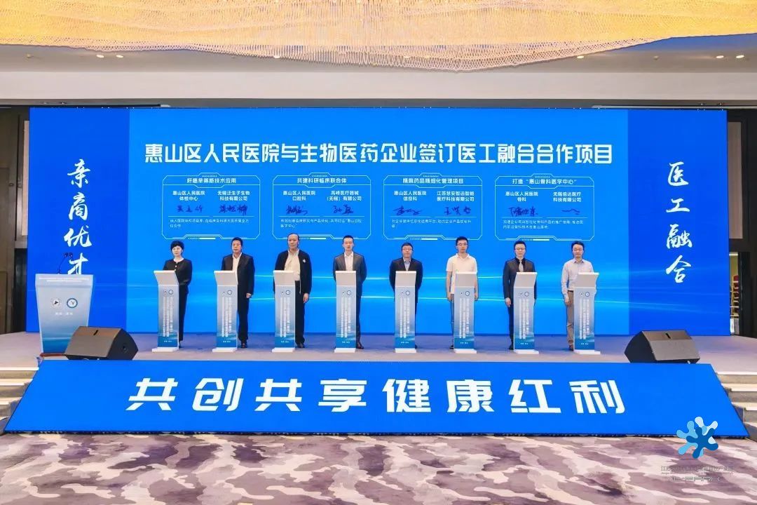 惠山區人民醫院檢驗科、藥劑科、科教科、泌尿外科、體檢中心、口腔科、信息科、骨科等科室分別與和惠山生命園申瑞生物、臨研通科技、華泰創新藥、茵絡醫療、泛生子、高峰醫療、慧安智遠、倍達醫療等企業簽訂了8個項目合作協議,包括共享共建科研平臺、共建醫學檢驗實驗室、共建科研臨床聯合體、推動臨床專利成果轉化,共同打造“惠山口腔醫學中心”、“惠山骨科醫學中心”,籌建“惠山創新藥臨床應用中心”等。
